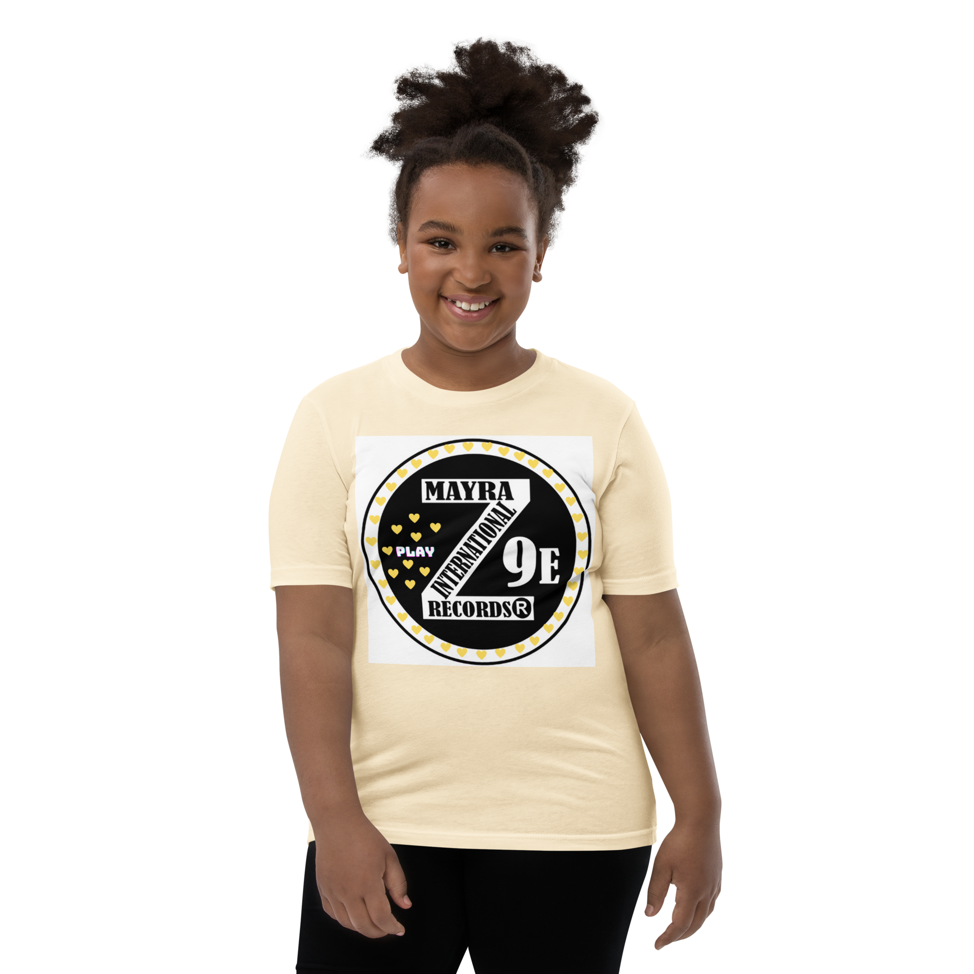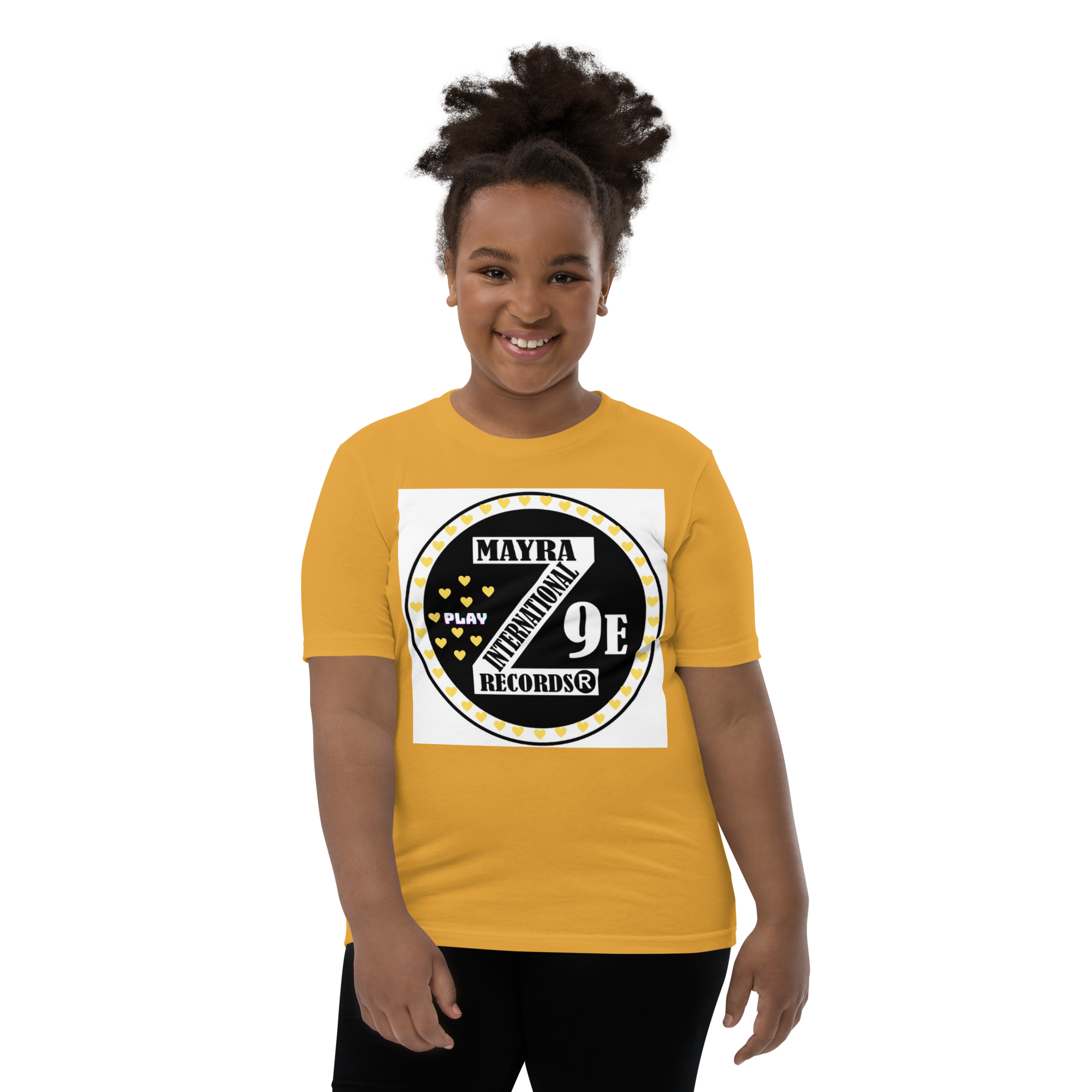 3 Zoria 9 Youth bright-yellow hearts short sleeve t-shirt