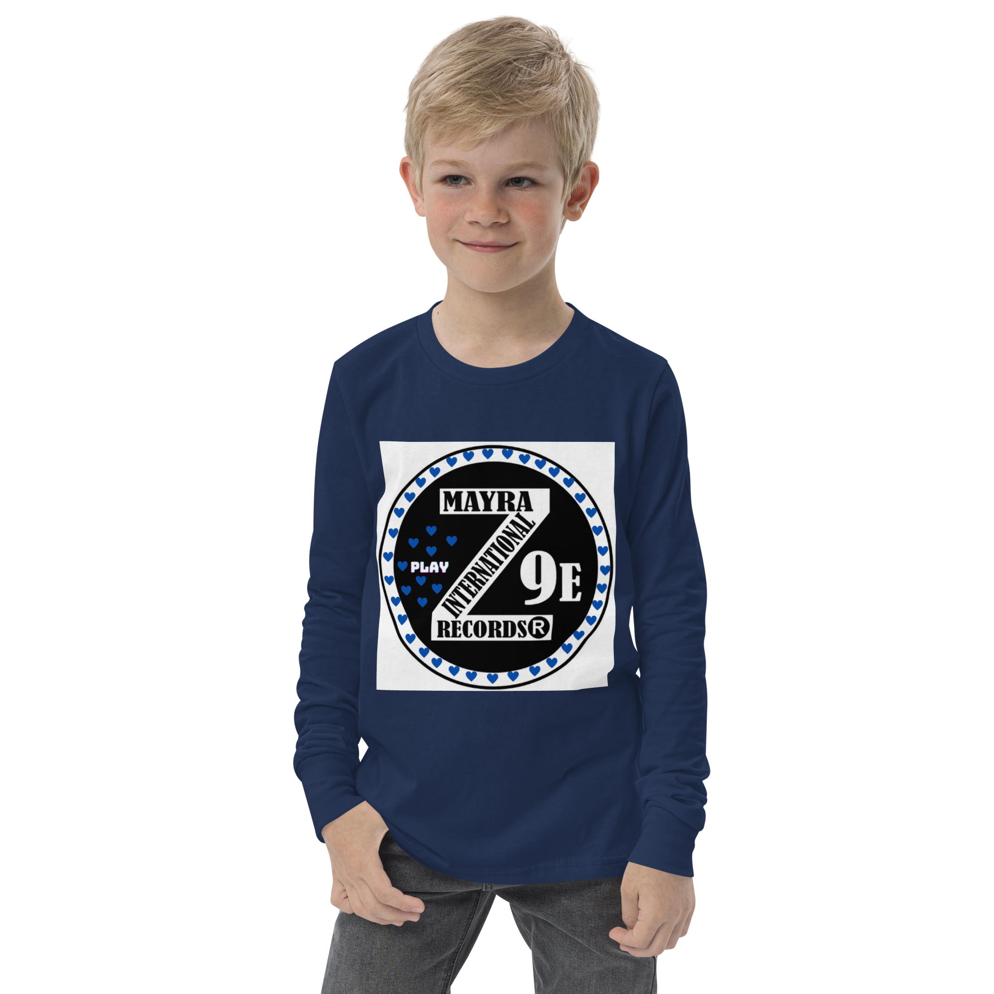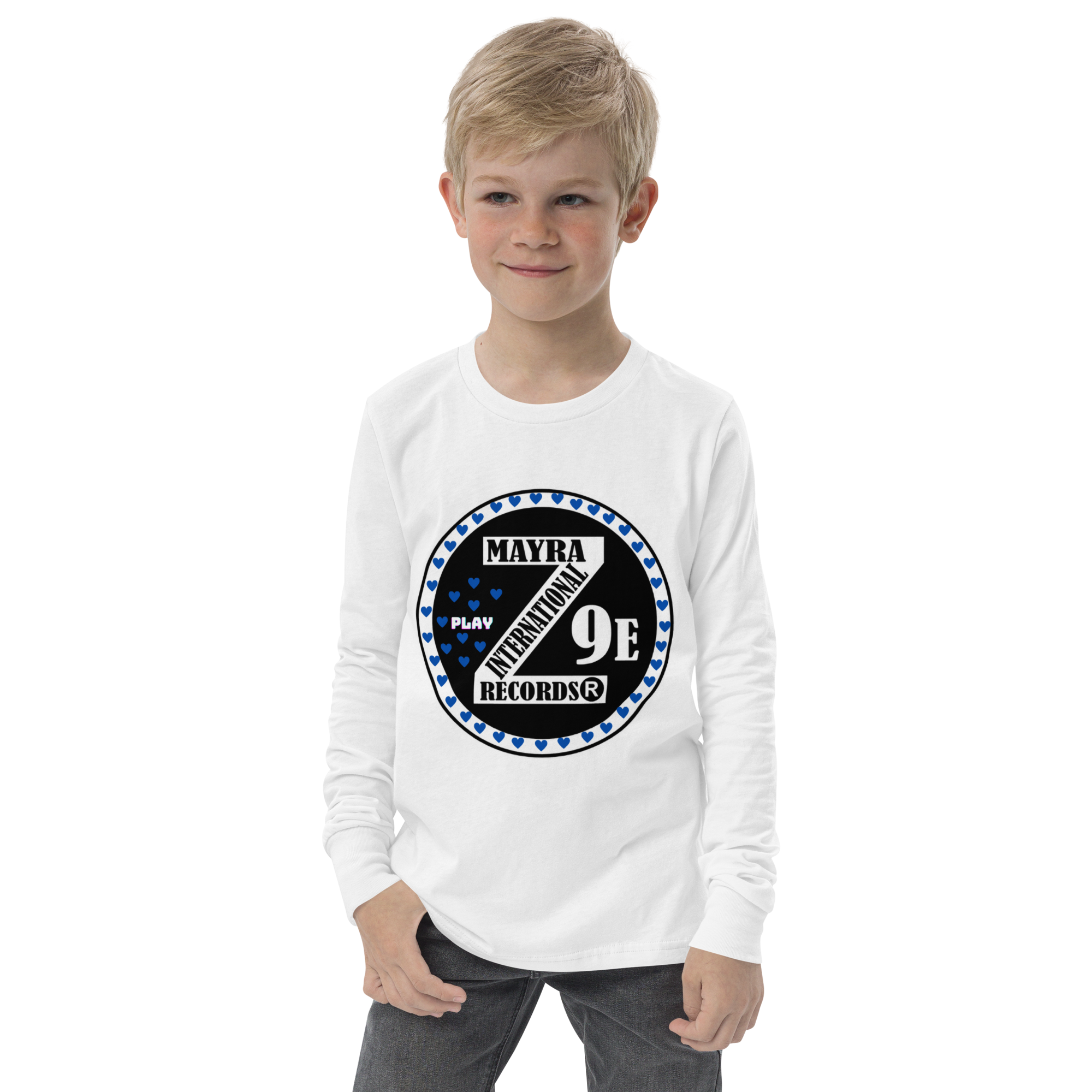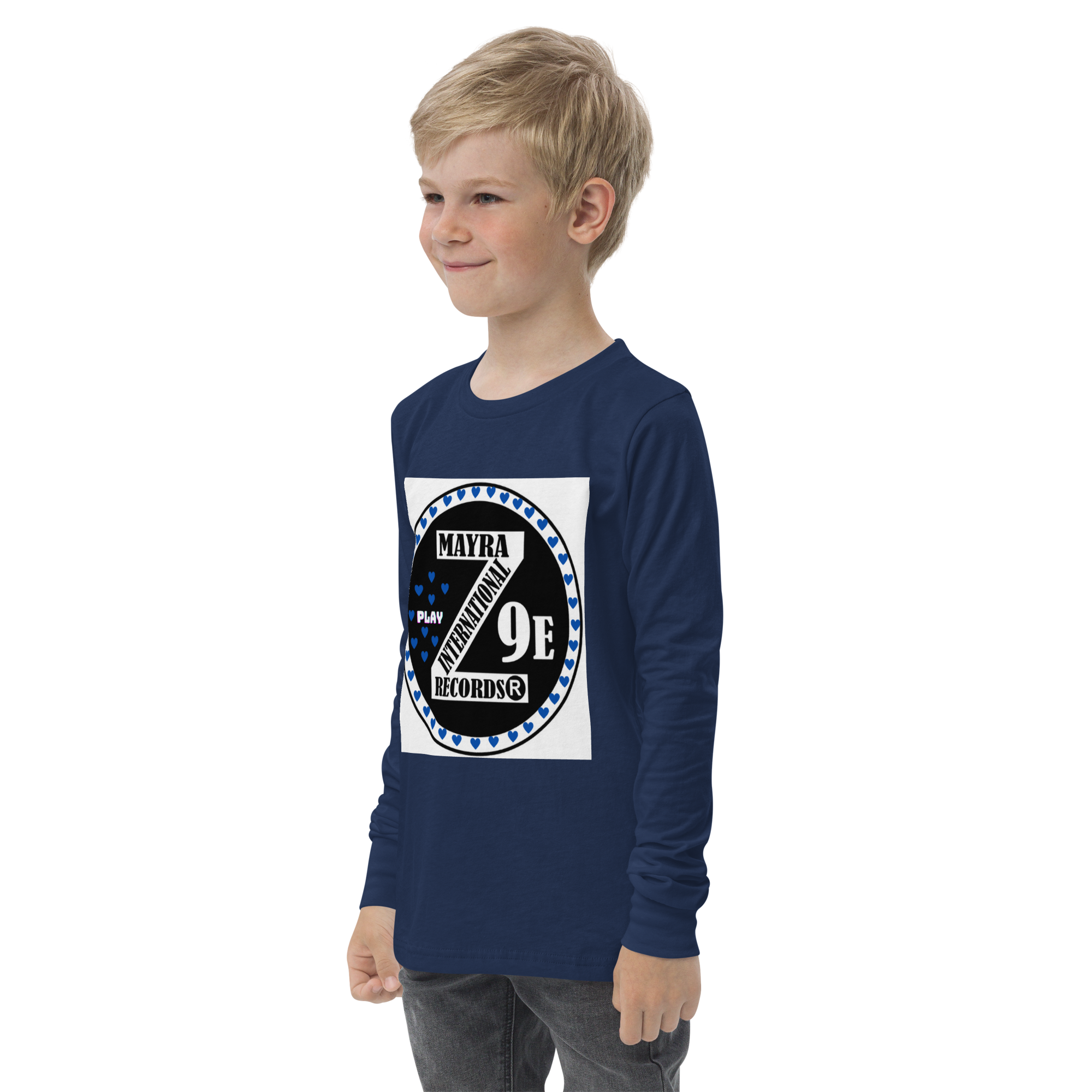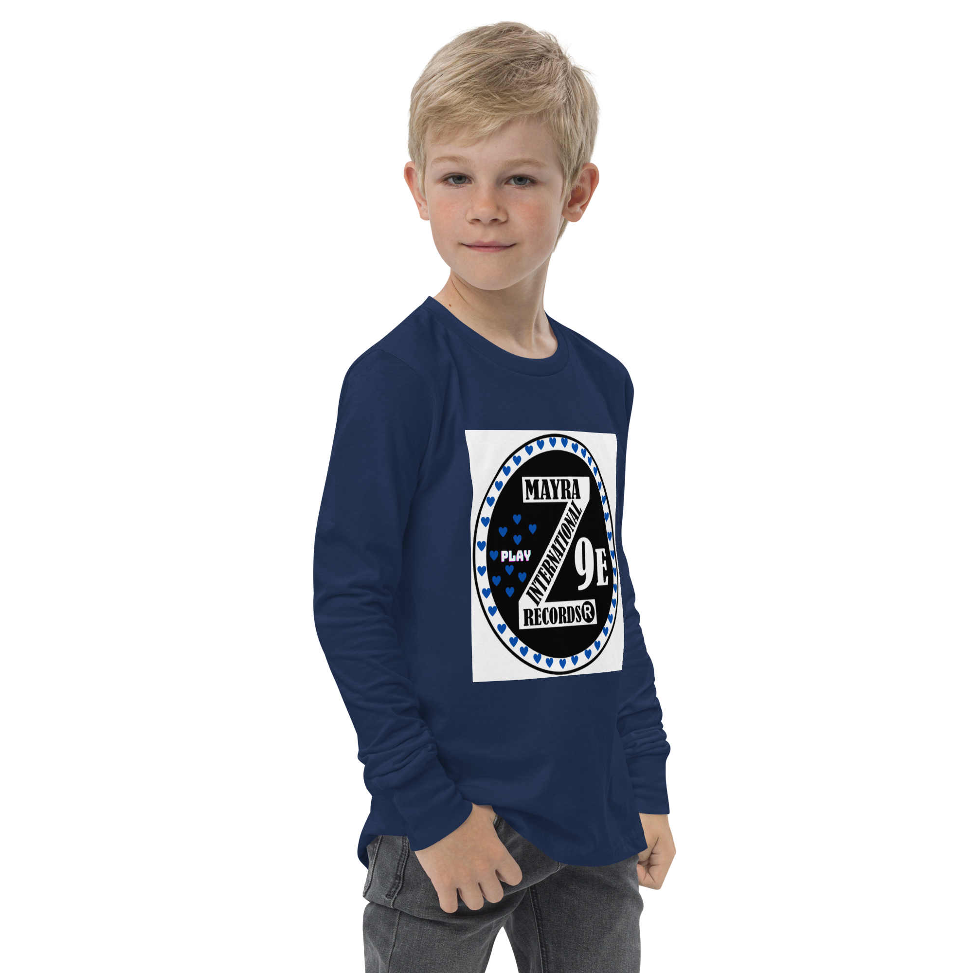 3 Zoria 9 Youth long sleeve blue hearts tee