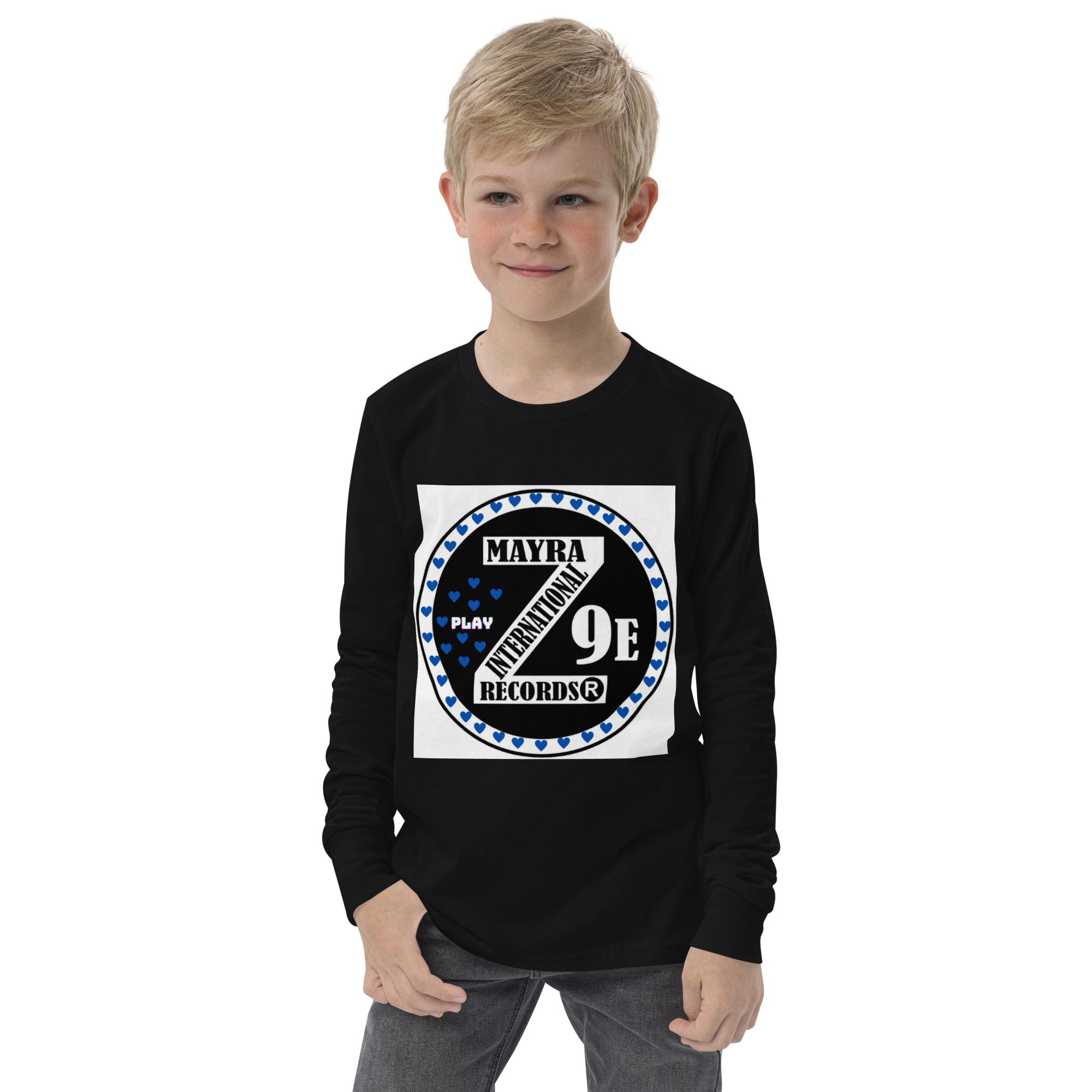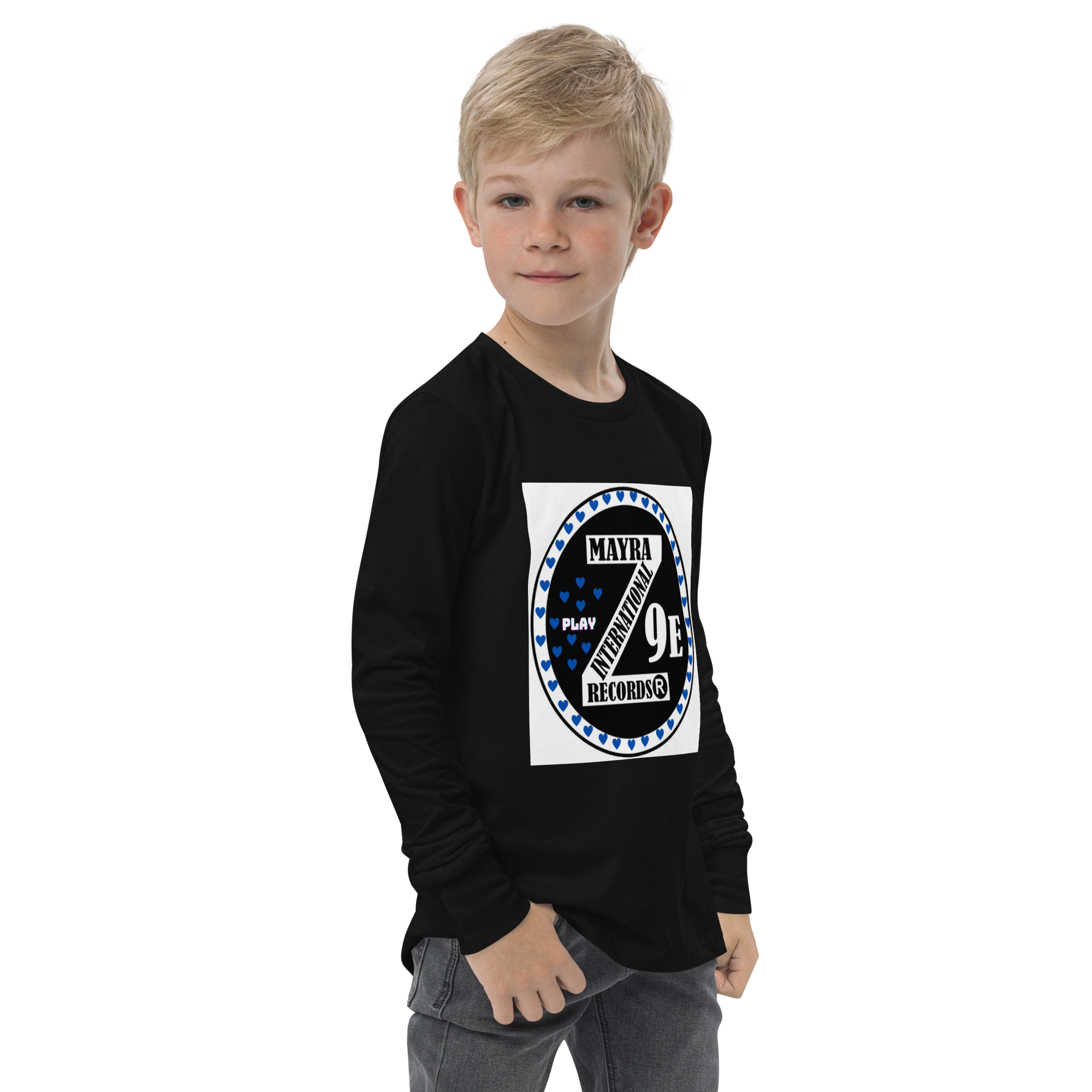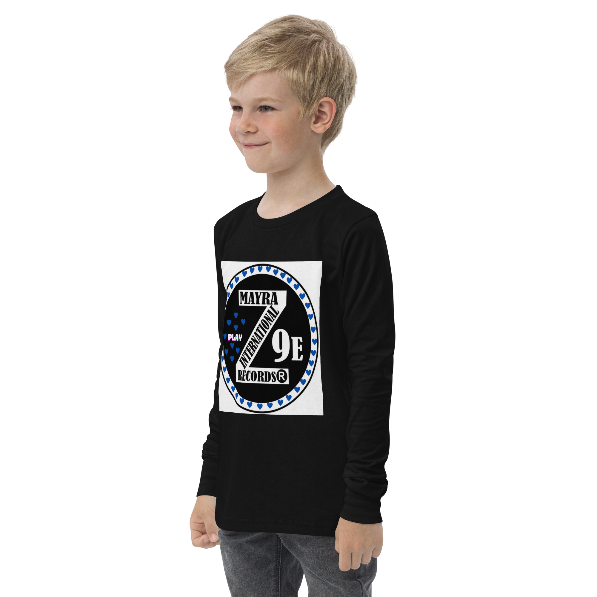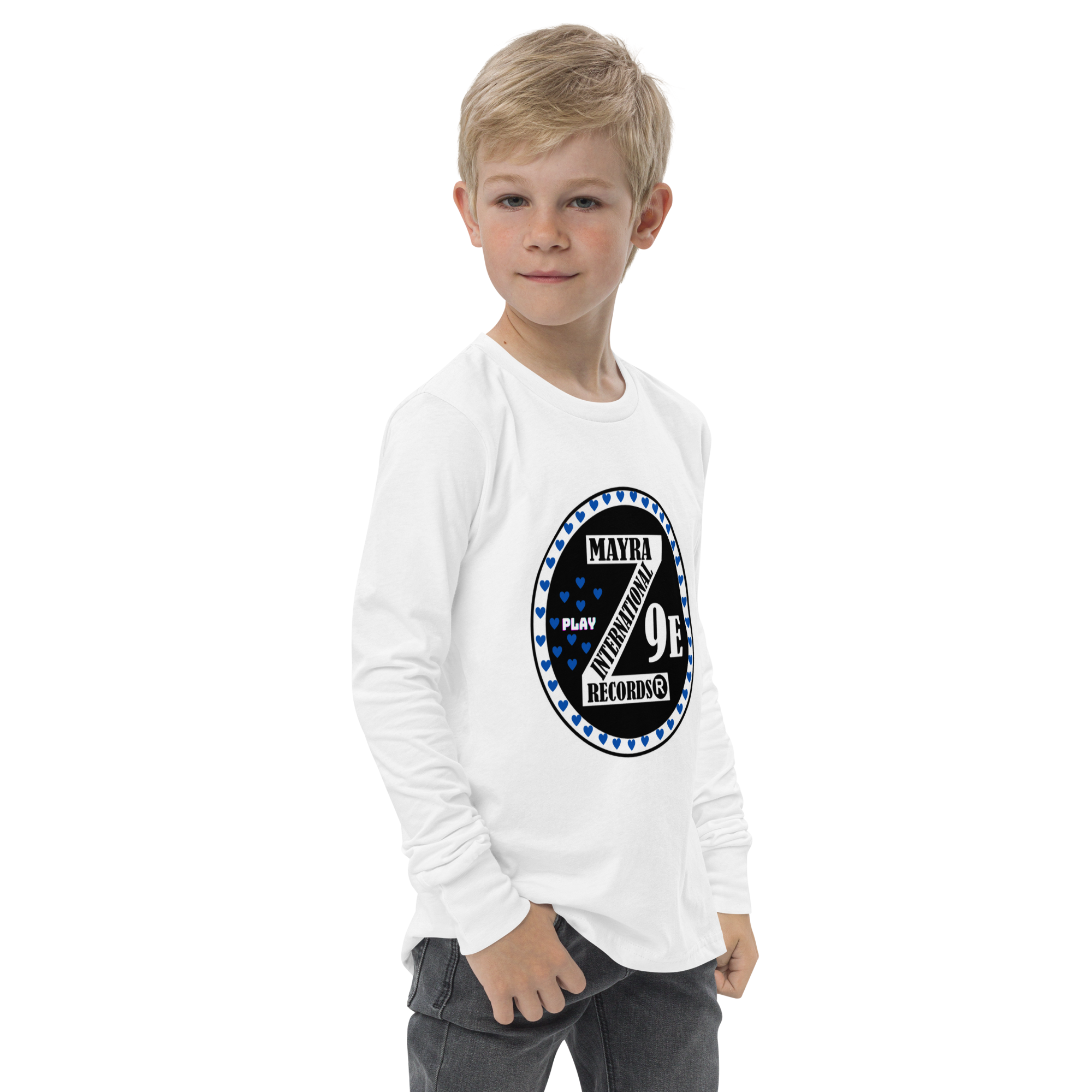 3 Zoria 9 Youth long sleeve blue hearts tee