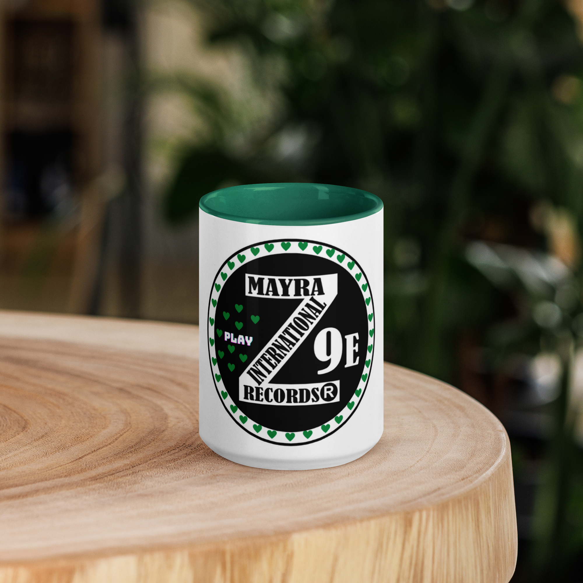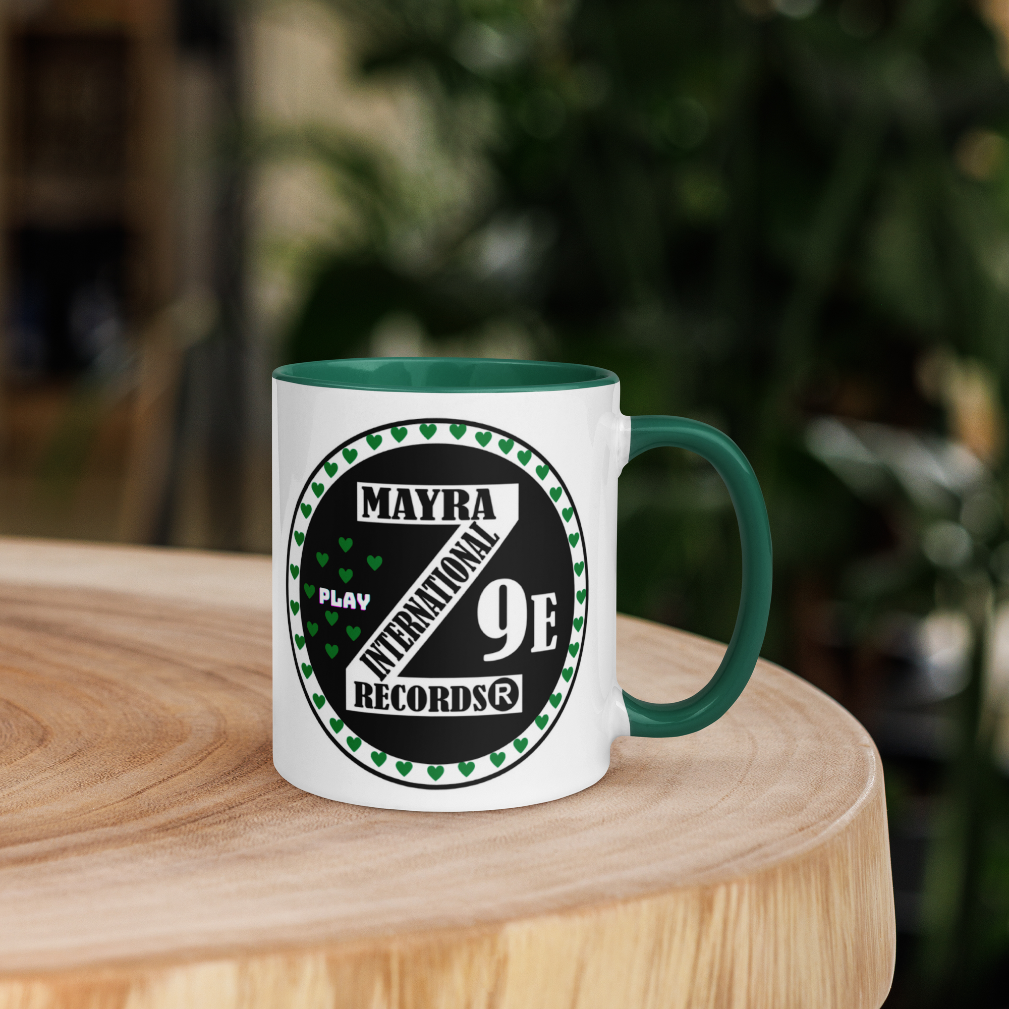 Zoria 9 green hearts mug with color Inside