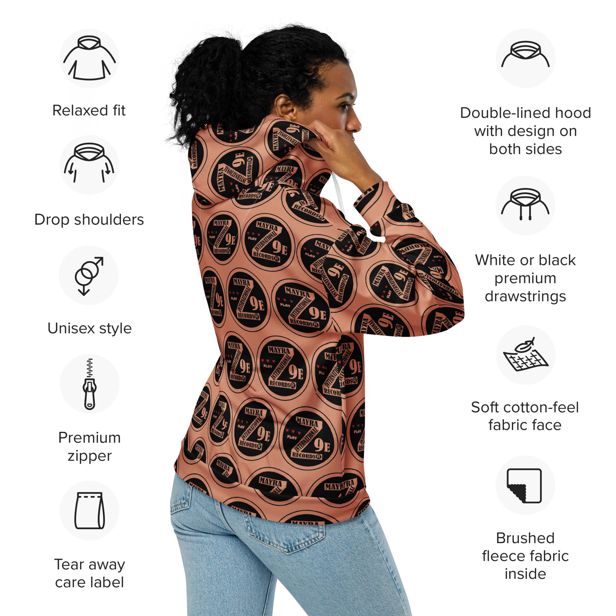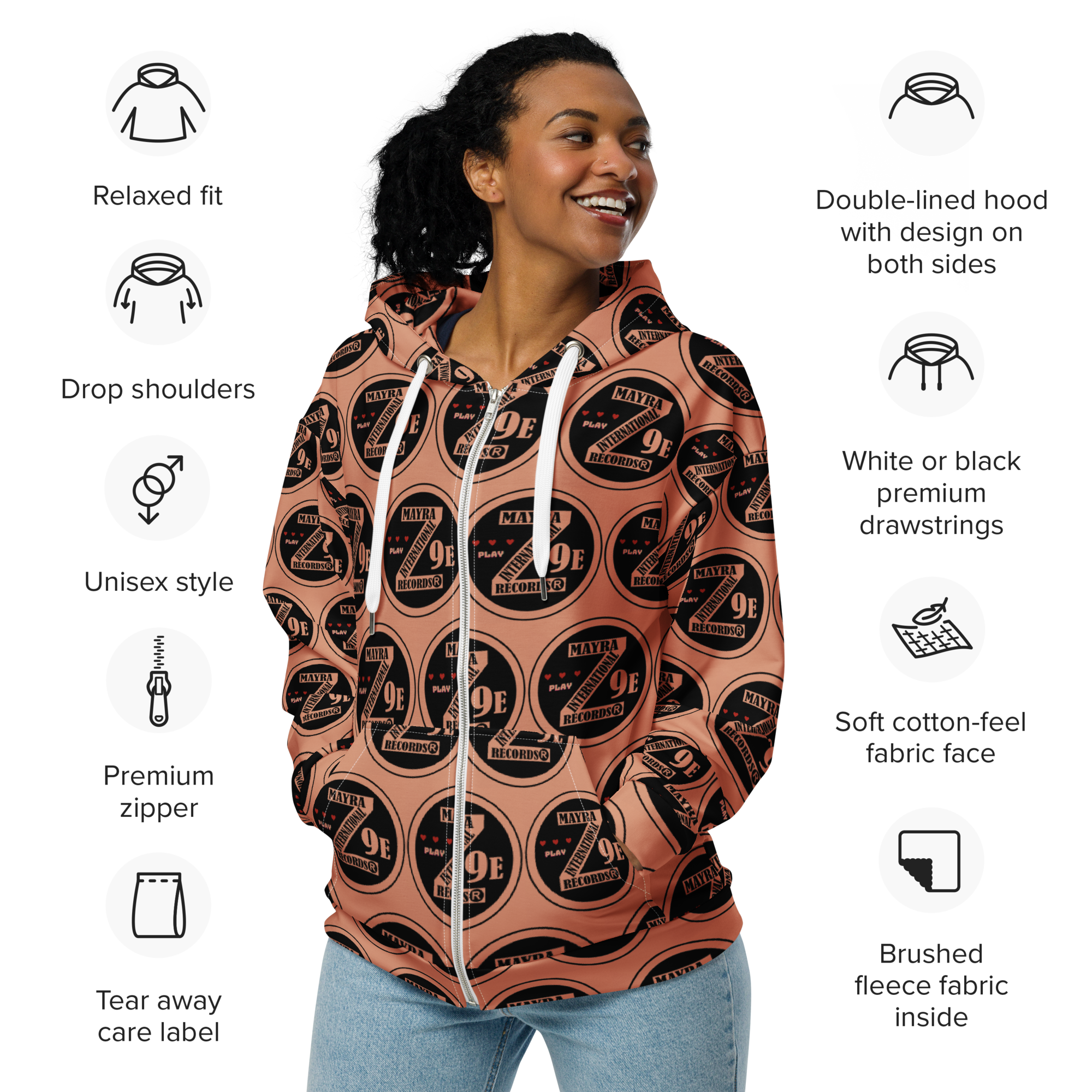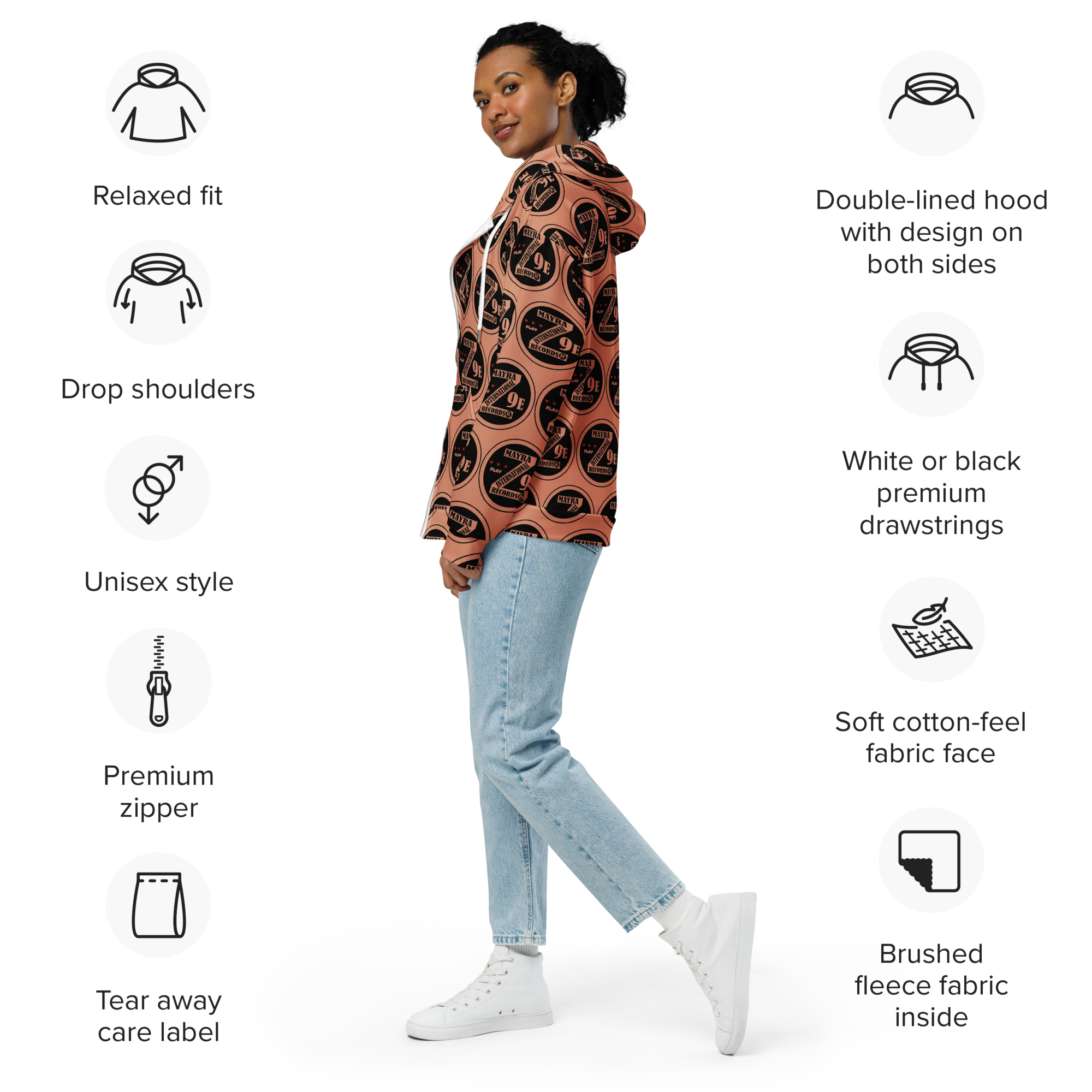 Meet the zip hoodie—a must-have for everyday wear. Crafted from 95% recycled polyester, it combines sustainability with style. Soft both inside and out, this unisex hoodie offers a relaxed fit with drop shoulders. Plus, it’s designed to last, keeping you cozy and fashionable for years to come.