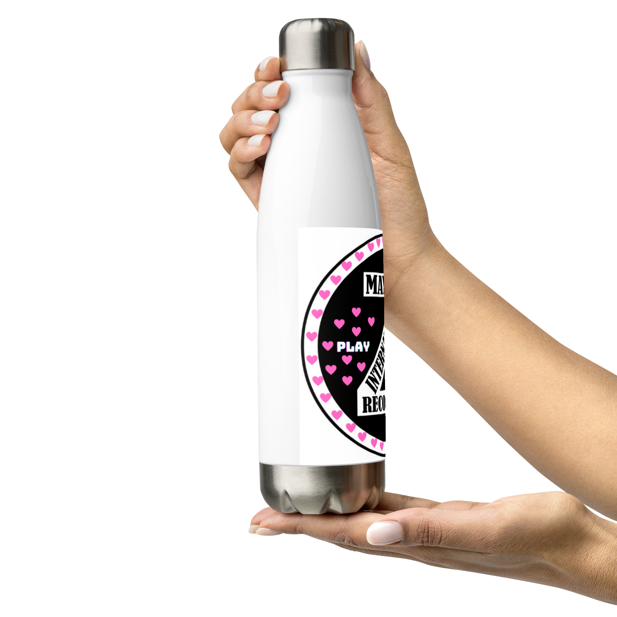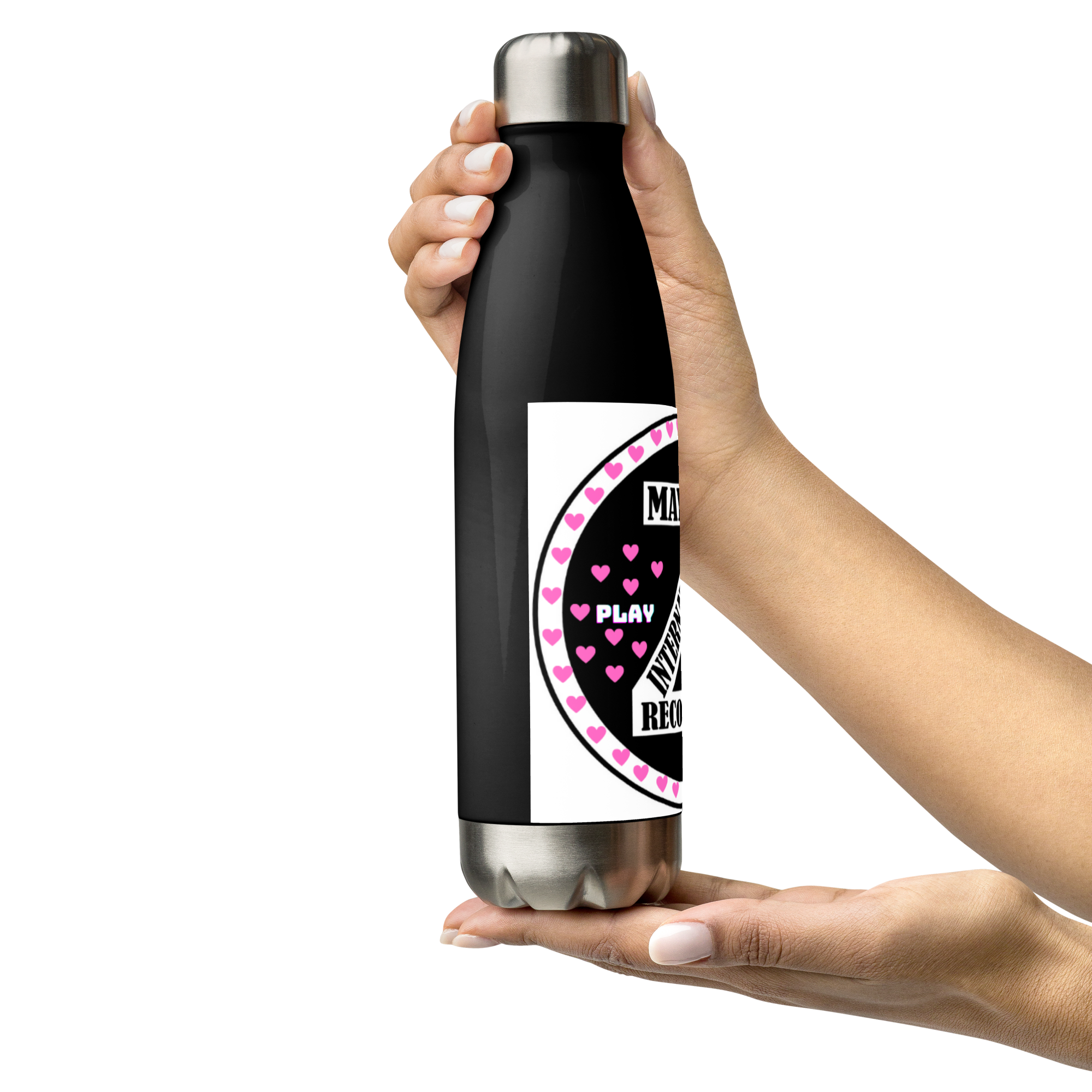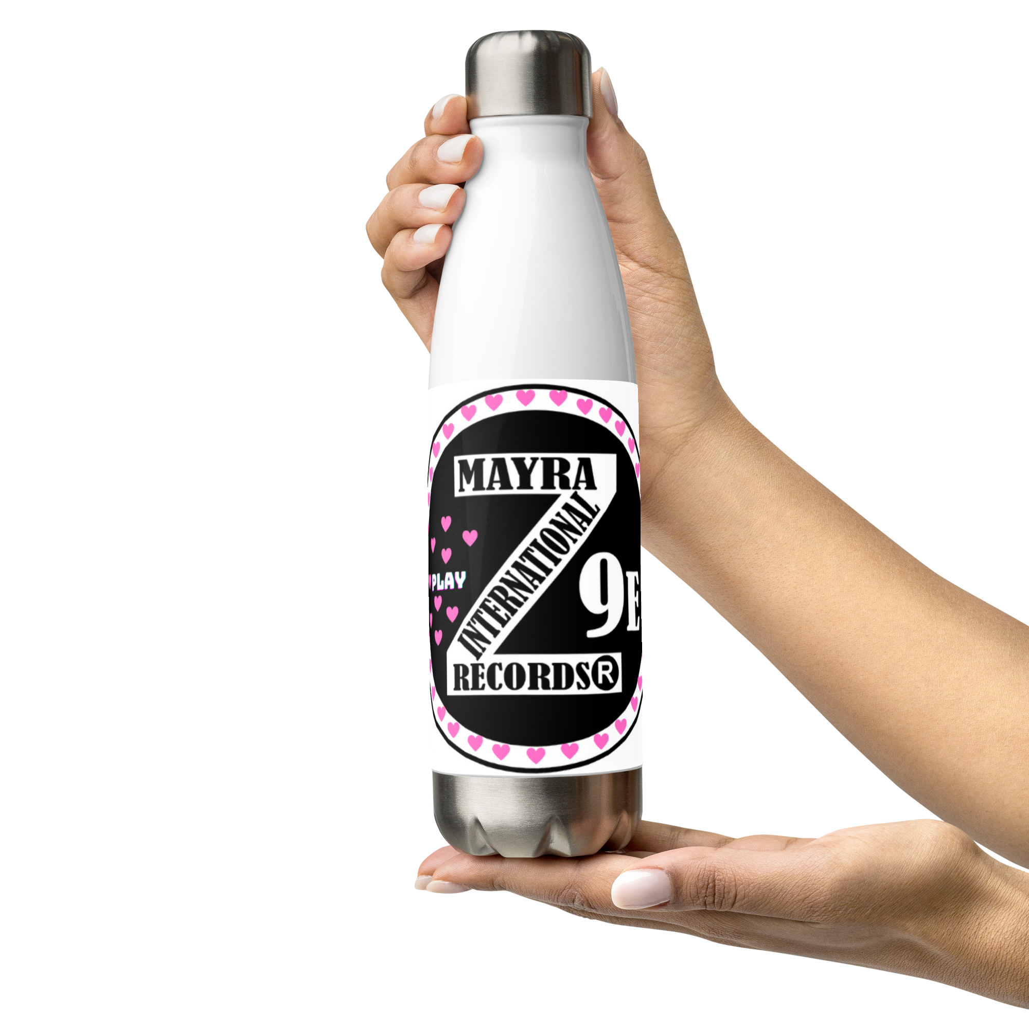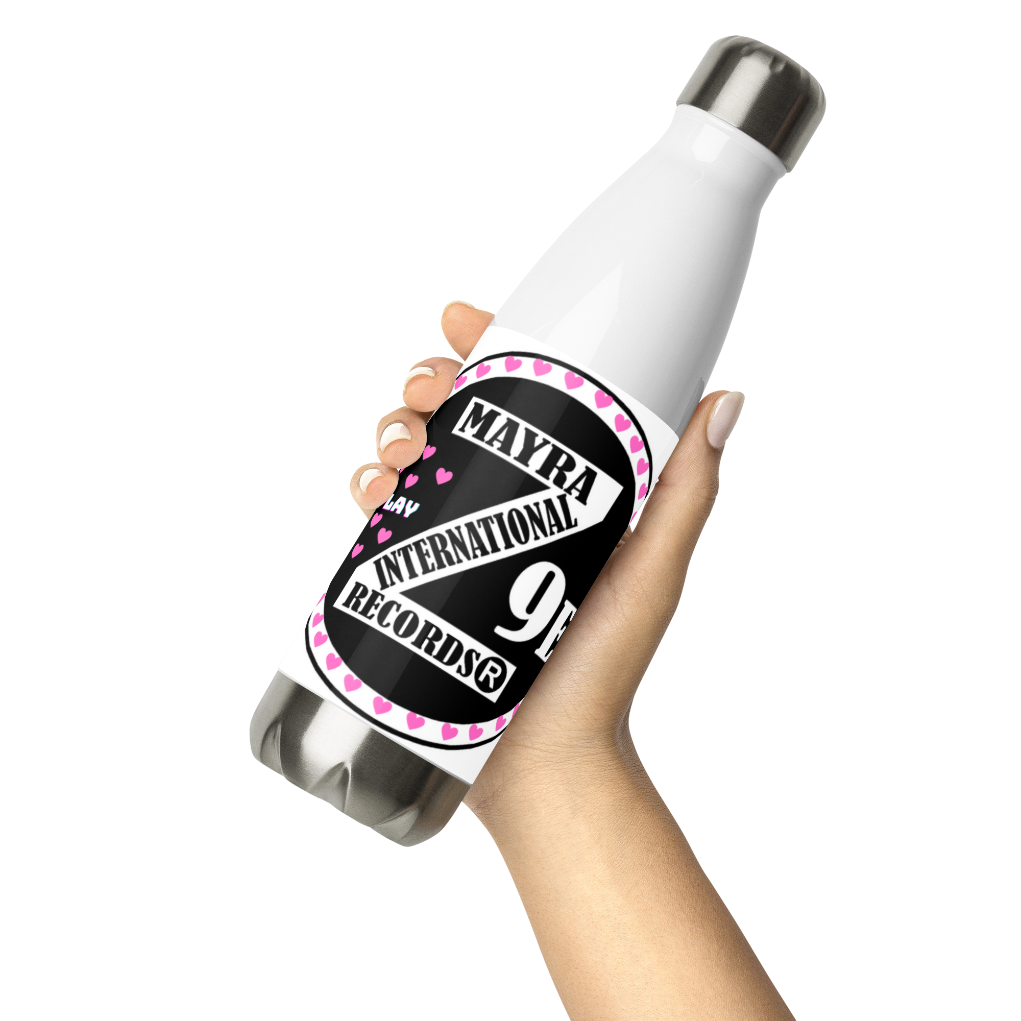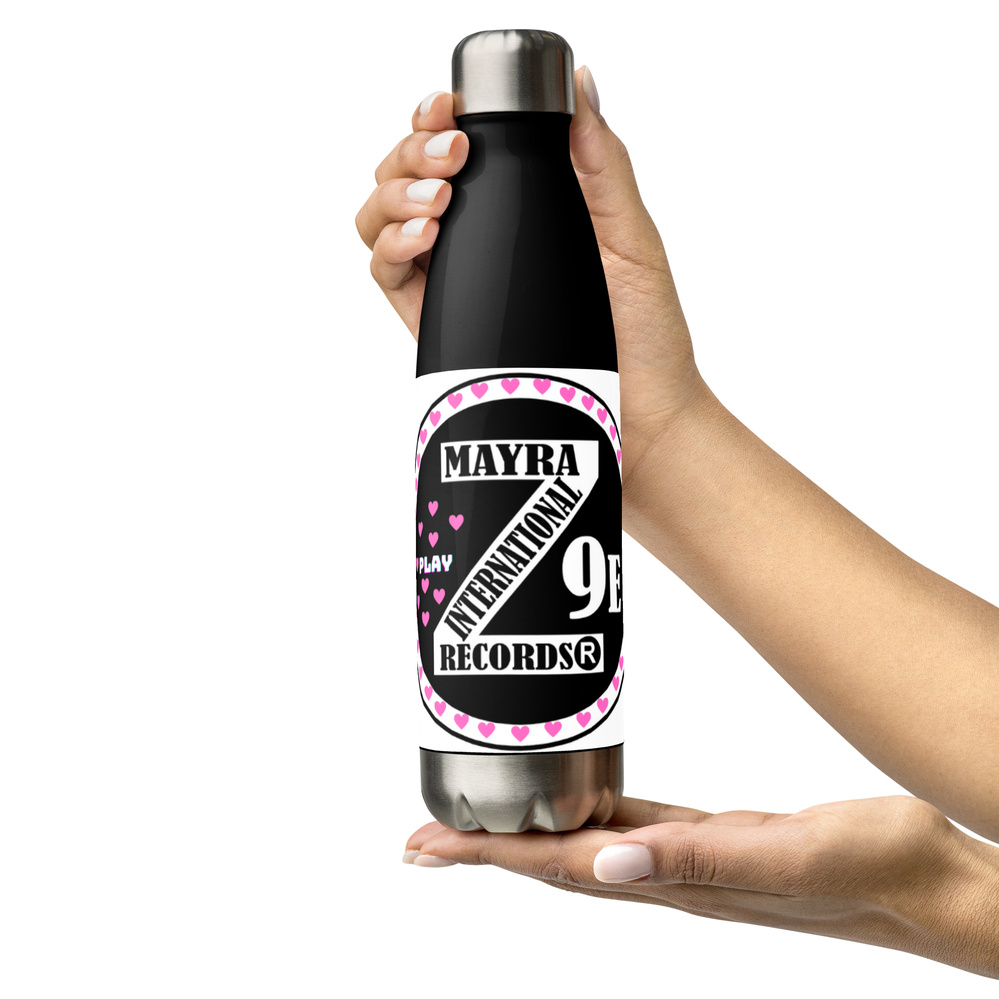Zoria 9 Drink Water pink hearts stainless steel bottle