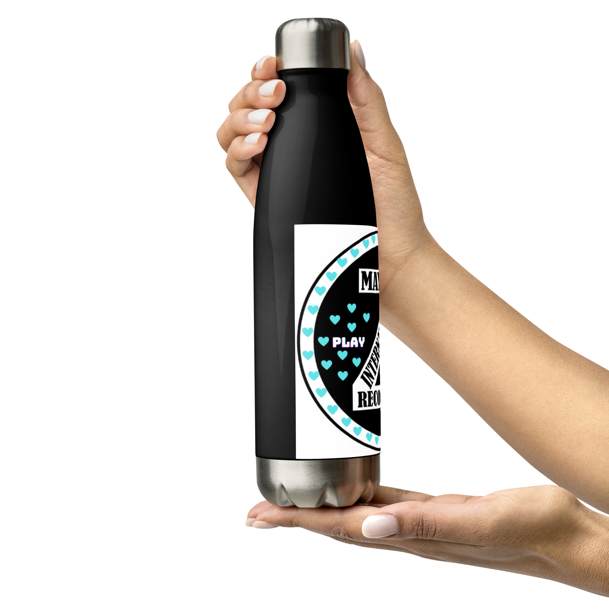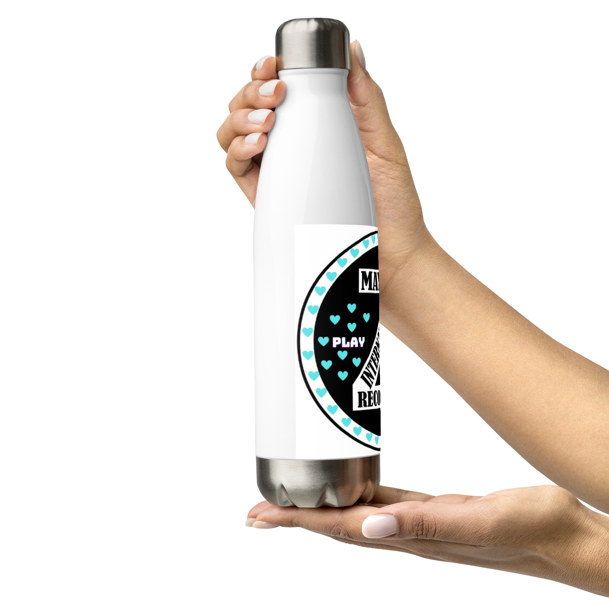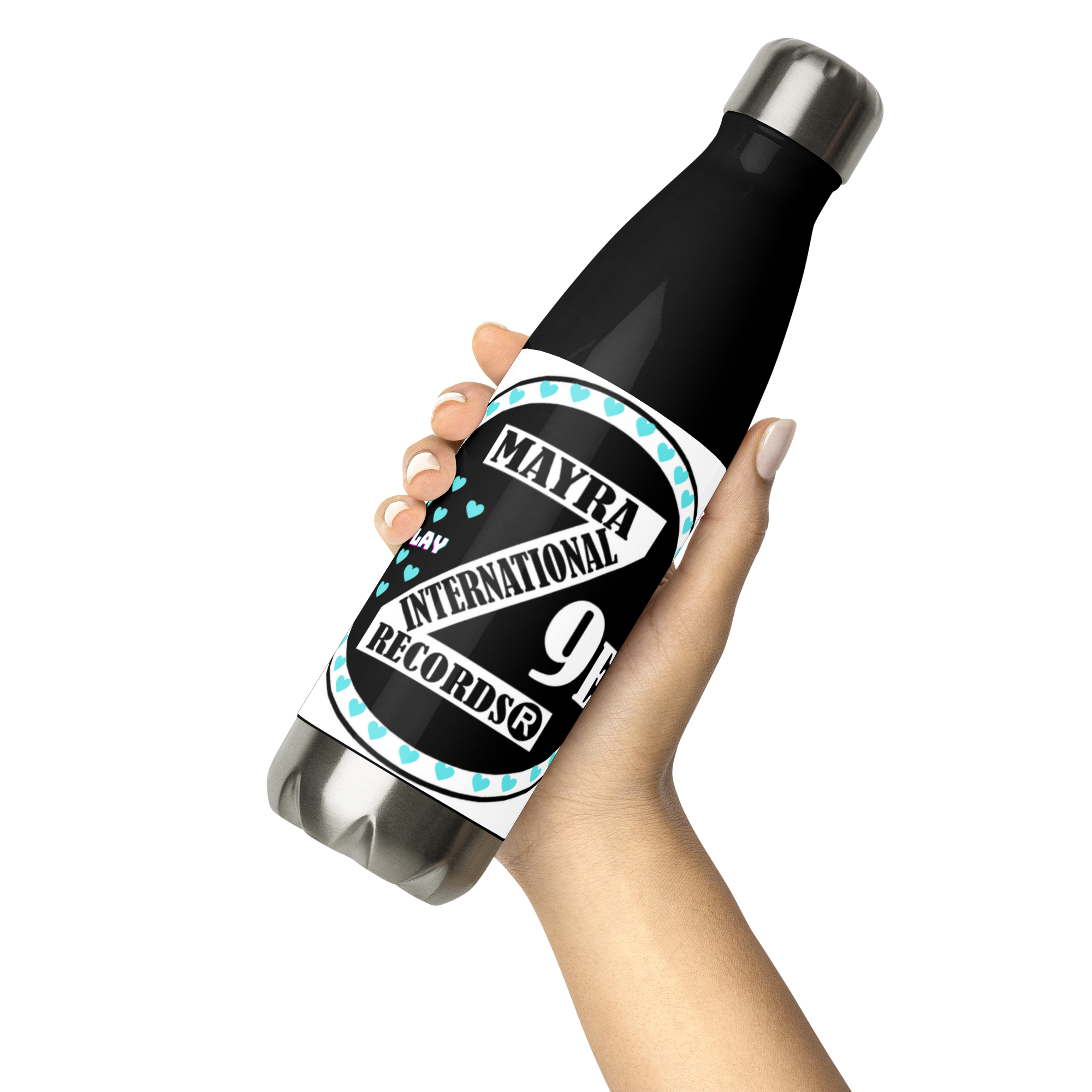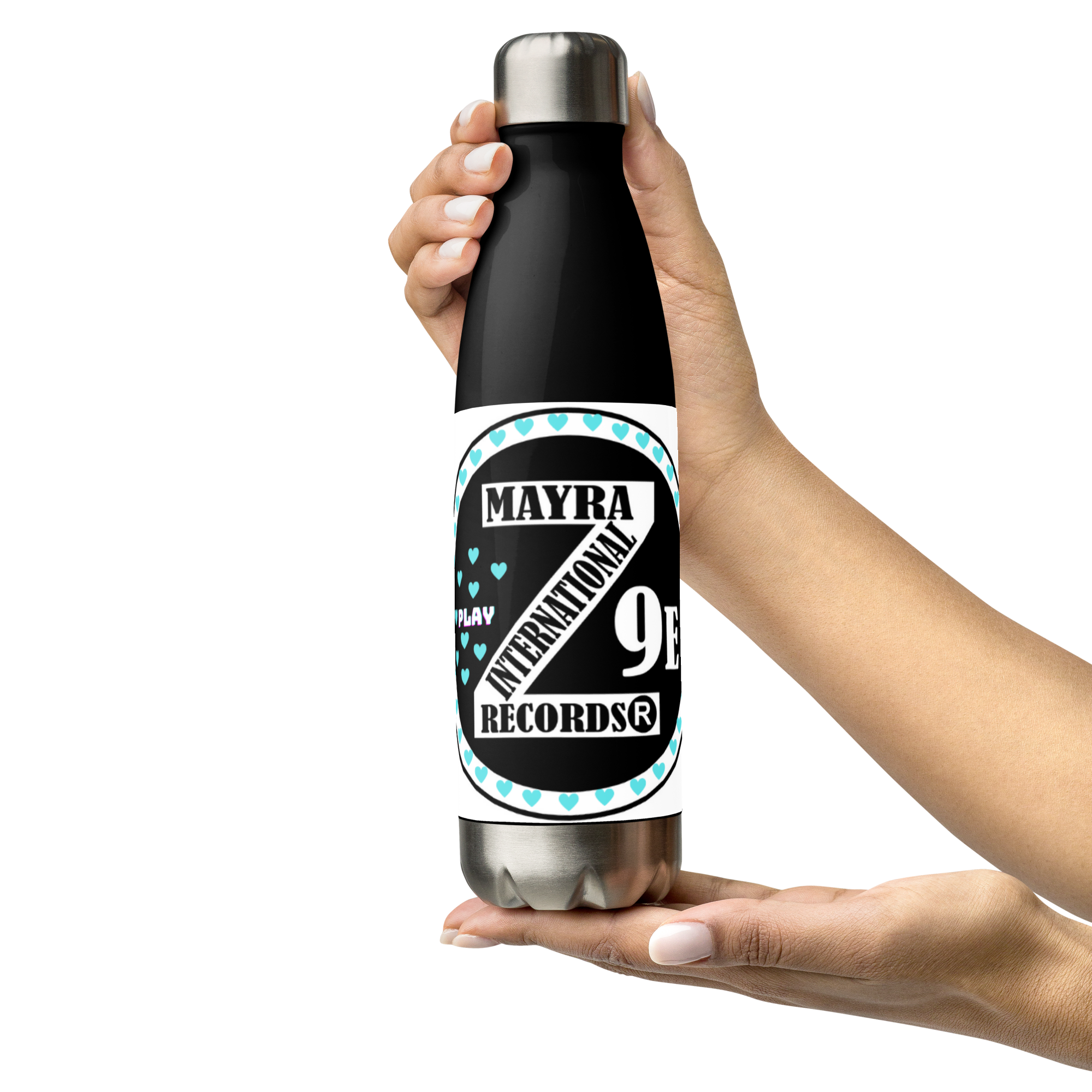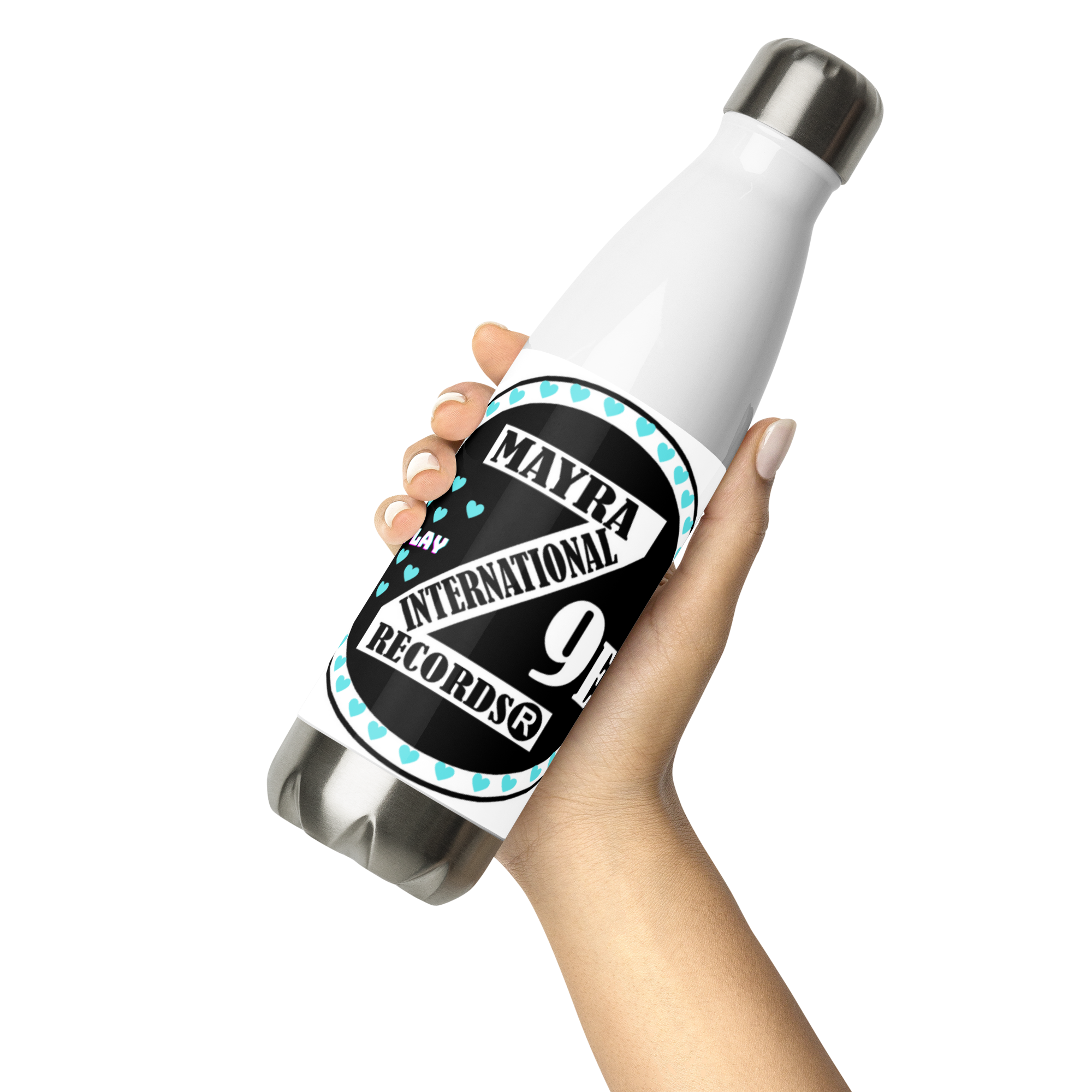 Zoria 9 Drink Water turquoise hearts stainless steel bottle
